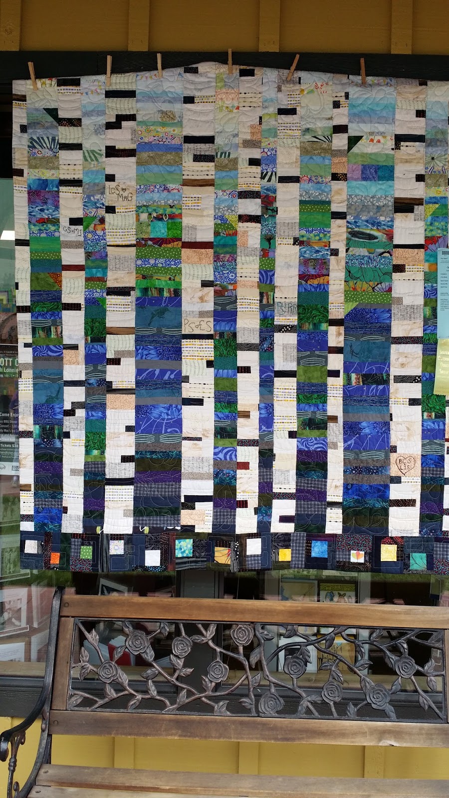 On Saturday we went into Sisters for the annual outdoor quilt show. We saw so many wonderful, lovely, gorgeous quilts there! What an inspiring visit. I have way more photos and need to get through them all sometime soon. Meanwhile, this was one of my favorites. (Of course, Blue and Green are my favorite colors!)
