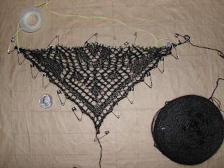I’m using Fino Alpaca with a twist (Alpaca/Silk) and US size 4 needles. The beads don’t show up much in this photo. Will have to take a close-up again a bit later.