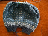 The second photo shows the sleeves in progress. I knit the cuffs separately and then joined and am working in the round– two sleeves at once, one set of yarn. At the end, I will cut the steeks and sew an underarm seam. This is pretty sticky wool, so I’m not sure how much sewing I really “have” to do.